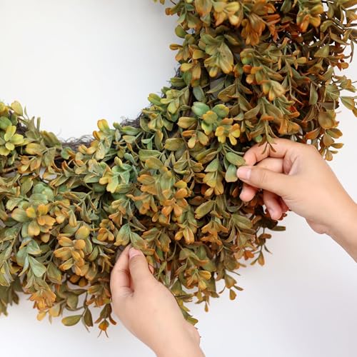 - At amazon.com you can purchase 26'' Large Fall Wreath for Front Door, Porch, Window- Artificial Boxwood Leaves Outdoor Autumn Wreath for Home, Farmhouse Wall Thanksgiving Day Harvest Festival Decor for only