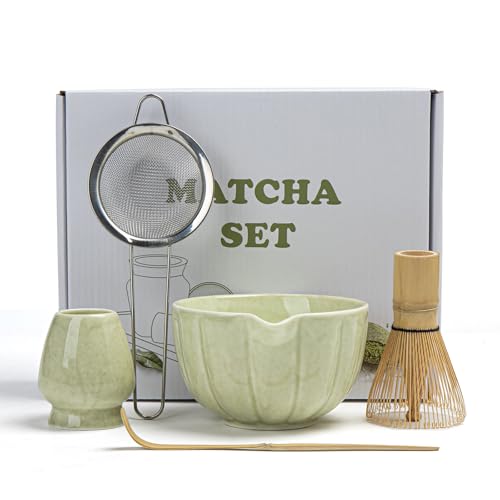 5 Pcs Perfect Matcha Whisk Set for Matcha Lovers and Tea Ceremony. Matcha Whisk Set, Matcha Bowl with Spout, Matcha Whis,k Chasen Holde,r Sifte,r Bamboo Scoop – 5 P,cs Perfect Matcha Making Kit for Matcha Lovers and Tea Ceremony