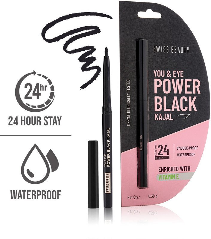 Swiss Beauty You and Eye Power Black Kajal | Waterproof & Smudge-Proof | 24 Hour Stay | Matte Finish Black Kajal