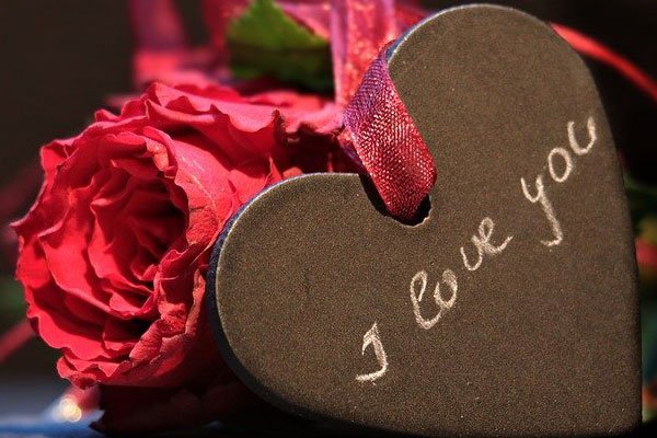 Romantic heart-shaped chalkboard with "I love you" message and a red rose, ideal for Valentine's Day or special love gestures.